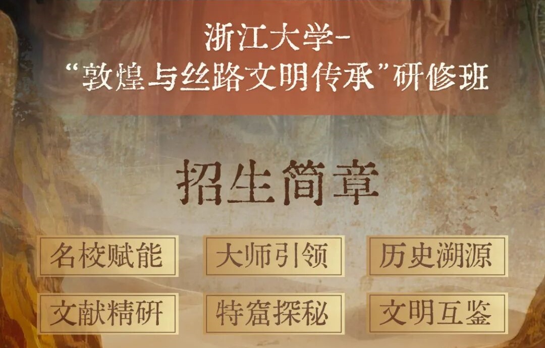 传承中华优秀传统文化、推进文化自信自强、深化文明交流互鉴,是新时代文化建设与学术研究的核心使命。敦煌学作为百年国际显学,涵盖文献、考古、艺术、宗教、丝路交通等多重领域,是解码中华文明包容特质、阐释丝路文明交融逻辑的关键载体。浙江大学历史学院依托百年史学积淀与敦煌学顶尖研究优势,联合敦煌研究院,重磅推出“敦煌与丝路文明传承”专题研修项目,以学术引领、知行合一为宗旨搭建高水平研学平台,助力学员深耕敦煌文化、体悟丝路精髓、传承中华文脉。