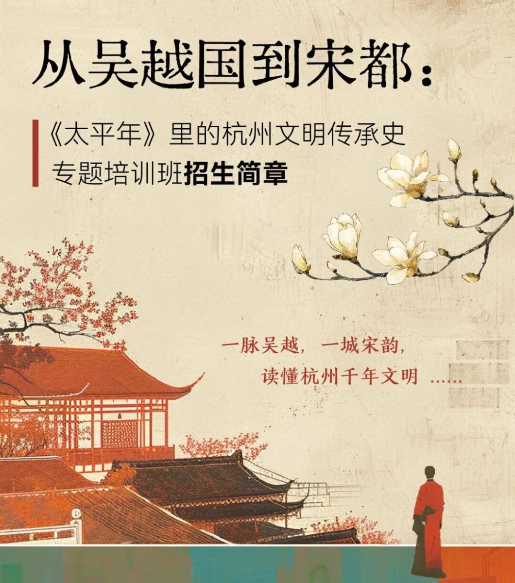 浙江大学历史学院依托百年学术积淀,深耕江南区域史、宋史研究、杭州文明史等优势领域,重磅推出“从吴越国到宋都:《太平年》里的杭州文明传承史”专题研修项目。项目以杭州城市发展为经,吴越至南宋文明演进为纬,由顶尖学者领衔授课,融合课堂讲授、历史现场探访、文化遗产研学于一体,带你回溯一座城市如何从乱世“乐土”成长为南宋“行在”,读懂杭州何以被誉为“世界上最美丽华贵之天城”的深层历史逻辑。