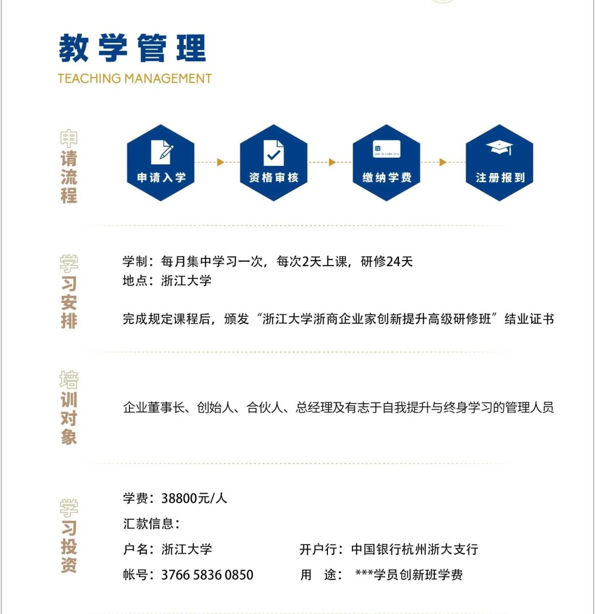 帐号:3766 5836 0850 用途:浙商企业家创新提升高级研修班学员学费。