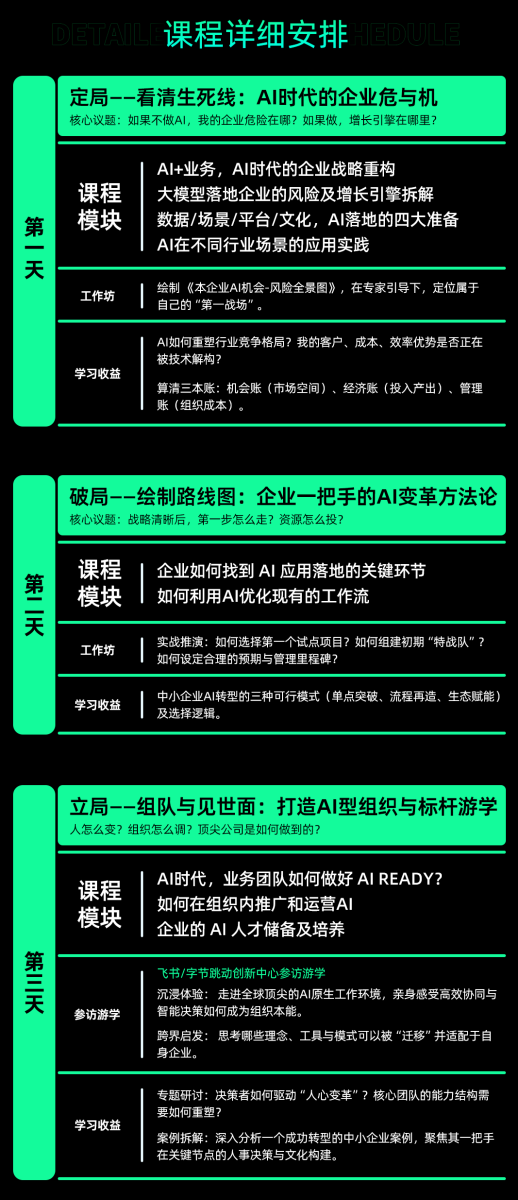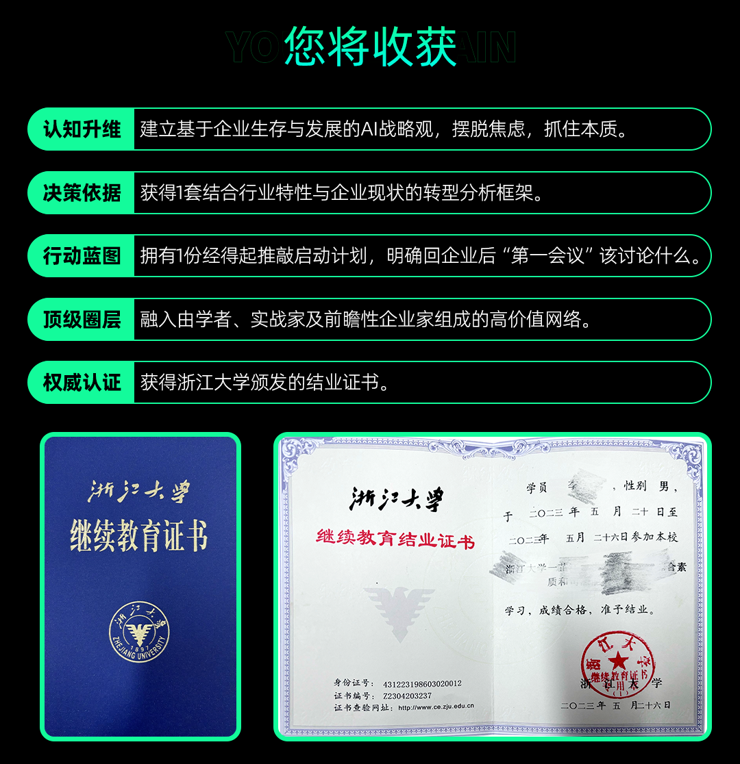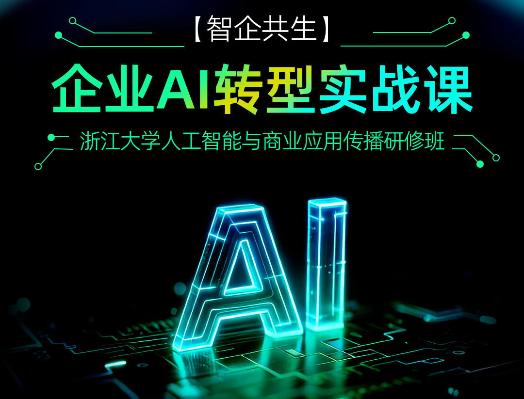 浙江大学全新推出人工智能与商业应用传播研修班——企业AI转型实战课,专为处于战略拐点的企业决策者而来,为你打通从AI认知到落地的全路径。