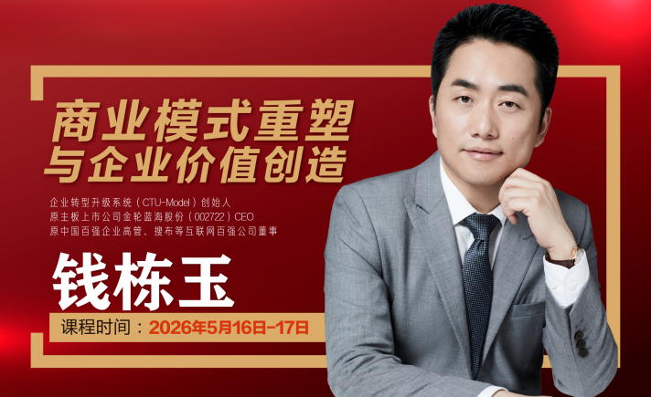 授课老师:钱栋玉,CTU-Model企业转型升级系统创始人、原主板上市公司金轮蓝海股份CEO、原中国百强企业高管、搜布等互联网百强公司董事。