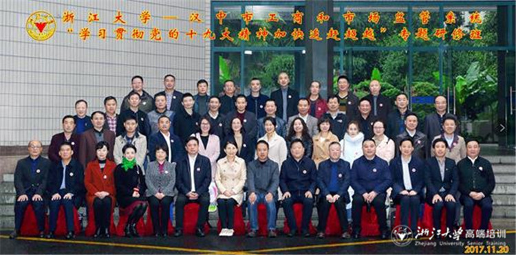 浙大培训快讯:11月20日上午,汉中市工商和市场监管系统“学习贯彻党的十九大精神加快追赶超越”专题研修班在浙江大学华家池校区顺利开班,汉中市委常委、副市长谢京帅,汉中市人民政府副秘书长吴永善,汉中市工商局局长李建强,全国干部教育培训浙江大学基地常务副主任、浙江大学继续教育学院党委书记兼副院长童晓明出席了开班式,汉中市工商和市场监管系统“学习贯彻党的十九大精神加快追赶超越”专题研修班45名学员参加了本期培训学习。