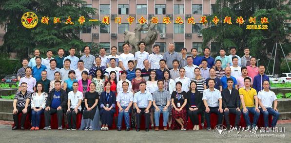 浙大培训快讯:5月22日,由荆门市委组织部、荆门市改革办主办,浙江大学继续教育学院承办的“荆门市全面深化改革专题培训班”在浙江大学华家池校区顺利开班。