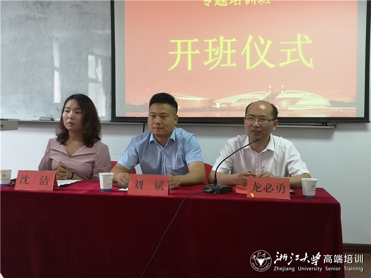 开班式上,龙必勇同志首先致欢迎辞,介绍了浙江大学的发展历程和职能,同时表达了对成都全体学员的欢迎和学习希望。刘斌同志代表成都市委组织部对这次培训班提出了希望和要求,希望大家珍惜培训机会,严守学习纪律,注意安全。