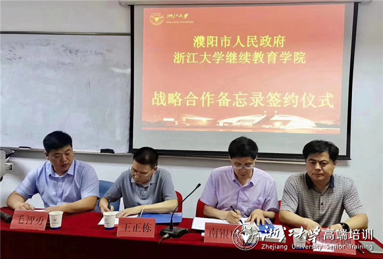 开班仪式上,濮阳市政府办公室副主任南银成、浙江大学继续教育学院副院长王正栋、濮阳市委组织部副县级巡察专员岳彩剧出席并讲话,对培训学员从思想认识、学习态度、作风纪律等方面提出具体要求,市商务局副局长毛智勇主持仪式。王正栋、南银成分别代表浙大继续教育学院、濮阳市政府签署《濮阳市人民政府浙江大学继续教育学院电子商务培训战略合作备忘录》。