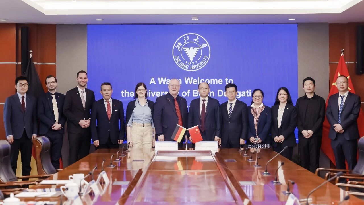 4月24日,德国波恩大学校长米夏埃尔·霍赫(Michael Hoch)一行访问浙江大学。校长马琰铭院士在紫金港校区会见来宾,双方就推进务实合作举行会谈,并签署校级合作备忘录。