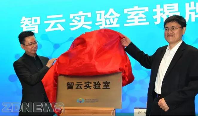 成立仪式上,浙江大学常务副校长任少波与阿里云总裁胡晓明共同为“智云实验室”揭牌。