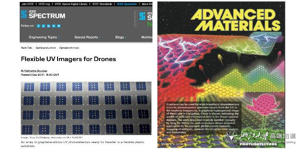 IEEE Spectrum对紫外探测器做专题新闻报道。Ayaz 参与的宽光谱光电探测器成果入选为Adv. Mater.期刊的内插页封面