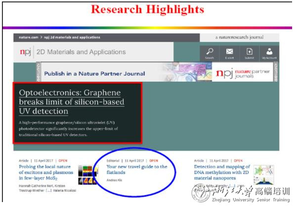 Ayaz 参与的石墨烯-硅基紫外探测器文章, NPJ期刊网站作了封面报道