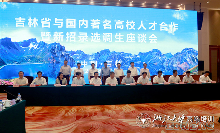 7月20日,吉林省与国内著名高校人才合作暨新招录选调生座谈会在长春举行。会上,浙江大学与吉林省签署《省校人才合作框架协议》。吉林省委书记巴音朝鲁出席并讲话,省委副书记、省长景俊海主持会议。