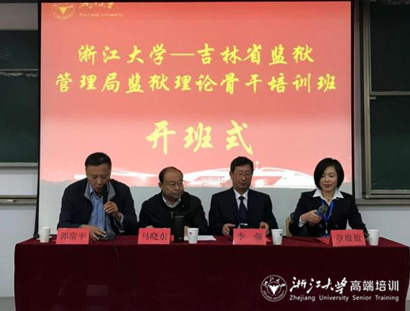 吉林省监狱管理局巡视员、吉林省监狱工作协会名誉会长、吉林省监狱法学研究会会长马晓东,吉林省监狱工作协会会长李强,浙江大学继续教育学院教学督导组组长、原副院长郭常平出席了开班式。