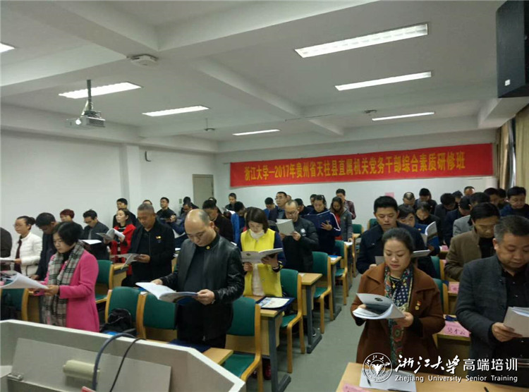 浙大培训快讯:11月18日上午,由浙江大学继续教育学院承办的2017年贵州省天柱县直属机关党务干部综合素质研修班在浙大顺利开班。56名党务干部参加了为期一周的培训。