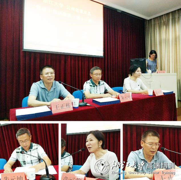 为期十二天的培训班于7月1日结束,在当天的结业仪式上,云南省景东县委常委、县委统战部部长朱元坤、浙江大学地方合作处副处长章丽萍、浙江大学继续教育学院副院长王正栋出席结业仪式并发表讲话。