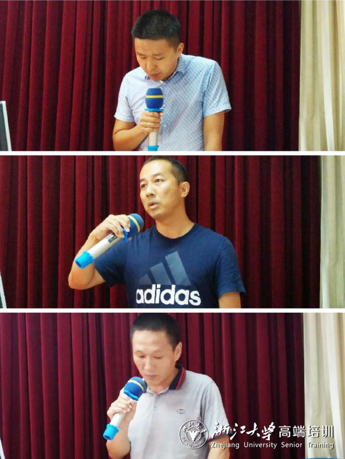 结业仪式上来自三个组的学员代表分别发表了学习感言,他们分别对浙大领导、授课老师、工作人员等表示了感谢,也表示此次培训班的召开让他们开阔了眼界、增长了知识,今后一定会将此次培训所学知识运用到工作和生活中去。